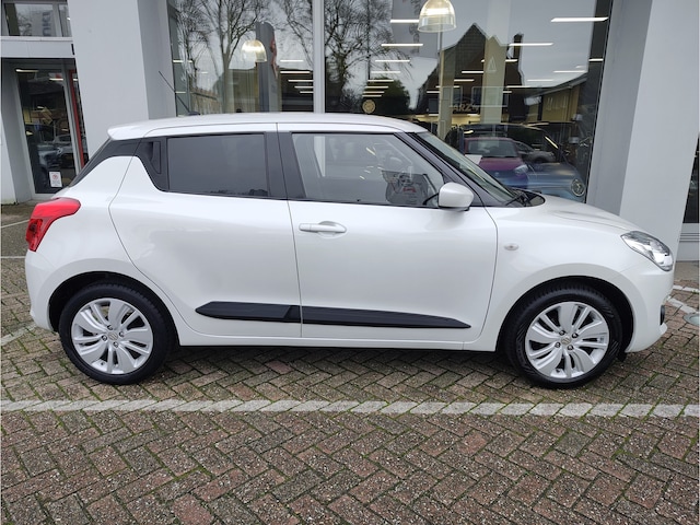 Keurige, lekker complete en geheel onderhouden Suzuki Swift in de luxe 1.2 Select-uitvoering, die onder andere voorzien is van ingebouwde navigatie, Apple CarPlay, Android Auto, een parkeercamera, stoelverwarming, stuurwielbediening en vierseizoenenbanden. Deze generatie Swift is daar bovenop ook nog eens een stuk veiliger dan voorgaande types, waardoor u met een gerust hart de weg op kunt met onze kleinste telg! Complete historie met tellerstanden is aanwezig. Wij leveren deze mooie en betrouwbare stadsauto aan u af inclusief rijklaar maken, dus met o.a. beurt, APK en 1 jaar garantie!