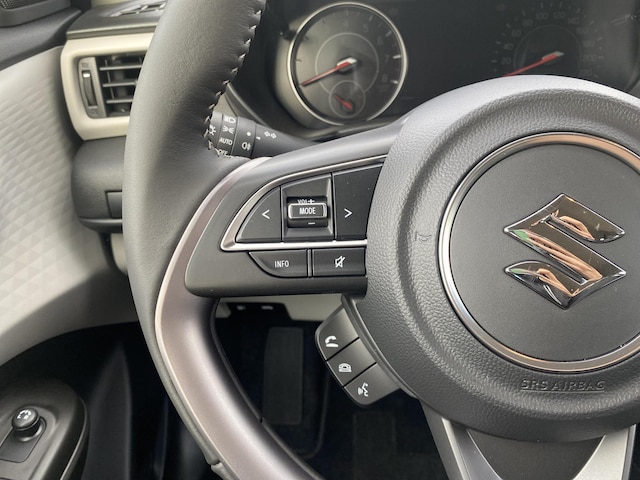 Aan boord van deze Suzuki houden verschillende geavanceerde systemen voor u de weg in de gaten. Ze waarschuwen u voor noodsituaties en kunnen in een aantal gevallen ook zelf ingrijpen. Verkeersborddetectie herkent tijdelijke en permanente verkeersborden langs en boven de weg. Onbedoeld buiten de rijstrook raken wordt voorkomen door het Lane-keeping systeem. Bij concentratieverlies van de bestuurder geeft vermoeidheidsherkenning automatisch een waarschuwingssignaal. Bovenop deze veiligheidsfeatures heeft deze Suzuki bovendien dodehoekdetectie, hill hold functie, autonoom remsysteem en bandenspanningcontrolesysteem.