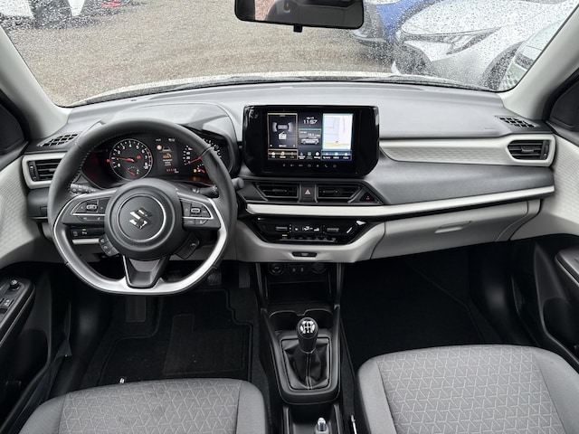 De nieuwste veiligheidssystemen komen in deze Suzuki Swift samen. De actuele snelheidslimiet, een inhaalverbod en andere verkeersborden; de verkeersborddetectie ondersteunt u tijdens elke rit. Het Lane-keeping systeem registreert permanent of u binnen de lijnen van de rijstrook blijft; dwaalt u onbedoeld af, dan waarschuwt het systeem en corrigeert de koers. Op lange ritten voorkomt de vermoeidheidsassistent dat uw concentratie afneemt. Ook helpen het dodehoekdetectie, hill hold functie, autonoom remsysteem en bandenspanningcontrolesysteem, uw rit tot een veilige rit te maken.
