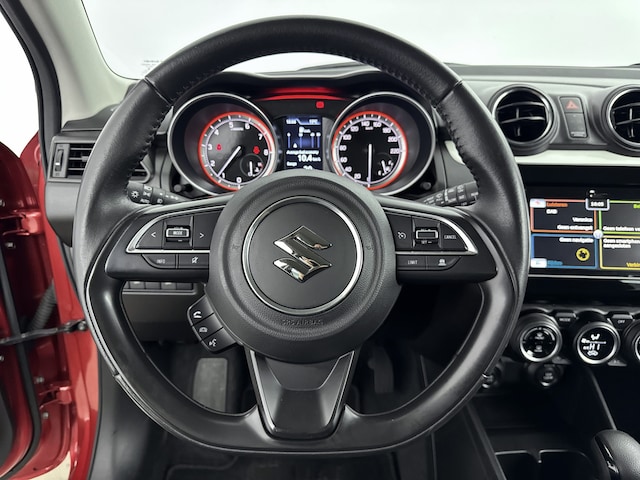 Comfortabel en veilig achteruitrijden gaat gemakkelijker dan ooit met behulp van de achteruitrijcamera. Als je de adaptive cruise control inschakelt, regelt de auto zelf de snelheid en de afstand tot de auto voor je. Onderweg kun jij veilig genieten van het audiosysteem met DAB-radio en het full map navigatiesysteem. Want in deze Suzuki bedien je ze vanaf het stuurwiel. Electronic climate control verwarmt of koelt het interieur met een druk op de knop. Starten en lopen, zonder contactsleutel. De keyless start signaleert de elektronische sleutel die je mee hebt en een druk op de startknop is voldoende. Deze auto is voorzien van lederen stuur, centrale deurvergrendeling met afstandsbediening, bagage afdekhoes en boordcomputer.