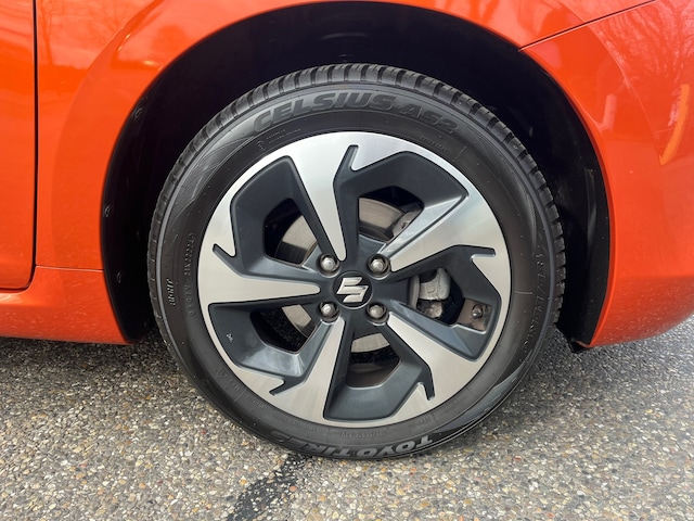 De achteruitrijcamera maakt inparkeren gemakkelijker dan ooit. Adaptive cruise control is een comfortabele en veilige optie. Het systeem reguleert de snelheid en houdt automatisch afstand tot uw voorligger. Deze Suzuki Swift is 'connected'. Belangrijke functies worden permanent gemeten en zijn uit te lezen via een speciale app, ook op afstand. Onderweg kunt u veilig genieten van het audiosysteem met DAB-radio en het navigatiesysteem. Want in deze Suzuki bedient u ze vanaf het stuurwiel. Tot de standaard uitrusting van deze auto hoort ook electronic climate control. Ook sportstuur met schakelpaddels, keyless entry, bagage afdekhoes en boordcomputer horen tot de voorzieningen op deze auto.