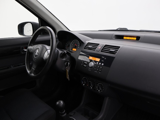 Permanent vierwielaangedreven Suzuki Swift 1.3 in de luxe Exclusive uitvoering met Trekhaak (1000 kg trekgewicht op kenteken), Stoelverwarming, Airco, Radio/CD met stuurwielbediening, Leder stuurwiel, Mistlampen, Onderhoudsboekje aanwezig en ingevuld.