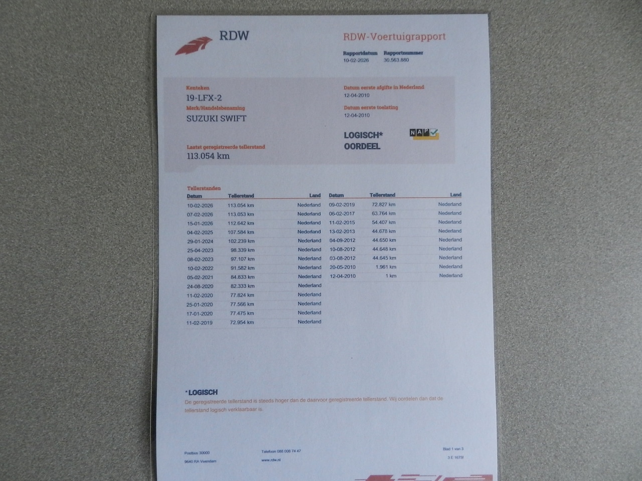 | Kilometerstand | 113.054 km |