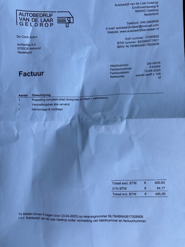 | Transmissie | Handgeschakeld |