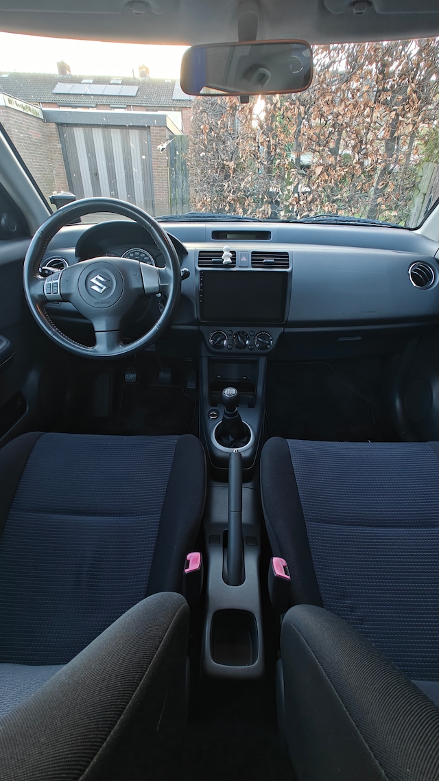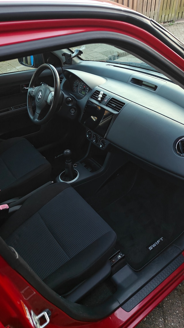 Bij aanschaf heb ik het interieur grondig gereinigd en dat is nog steeds terug te zien. Ik houd van een nette en schone auto, en dat merk je direct wanneer je komt kijken of een proefrit komt maken. Daarnaast is de auto voorzien van een nieuwe mattenset en een Apple CarPlay / Android Auto-scherm inclusief achteruitrijcamera. In tegenstelling tot veel andere Swiftjes is dit netjes ingebouwd en werkt alles naar behoren.