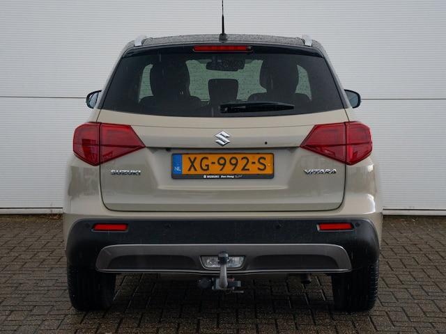 Pragmatisch en veilig als deze auto is, beschikt hij over diverse veiligheidssystemen. Onderweg fungeert de verkeersToonaangevende techniek en een hoge mate van degelijkheid, dat zijn enkele van de eigenschappen van Japanse auto's. Dat ziet u terug in deze Suzuki Vitara. De aandrijving van deze Suzuki wordt verzorgd door een driecilinder motor en een automatische transmissie. 's Winters komen de verwarmbare voorstoelen heerlijk van pas. Het interieur baadt in een zee van licht met het elektrische bediende glazen panoramadak. Ook 17 inch lichtmetalen velgen, LED koplampen, extra getint glas, in delen neerklapbare achterbank en snelheidsafhankelijke stuurbekrachtiging horen tot de voorzieningen op deze auto.