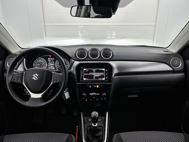 Twijfelen hoeveel ruimte je achter de auto hebt? Met de achteruitrijcamera weet je altijd hoeveel centimeter! Met adaptive cruise control houdt deze auto automatisch afstand tot jouw voorligger. De achteropkomend verkeer waarschuwing bewaakt de afstand tot achterliggers en geeft een signaal als er te weinig ruimte is. Dankzij electronic climate control is het interieur behaaglijk warm of verfrissend koel. Het geluidssyteem in deze Suzuki Vitara is regelbaar met behulp van de audiobediening op het stuur. Met DAB ontvangst, regensensor, lederen stuur, centrale deurvergrendeling met afstandsbediening, bagage afdekhoes en boordcomputer is deze auto helemaal compleet.