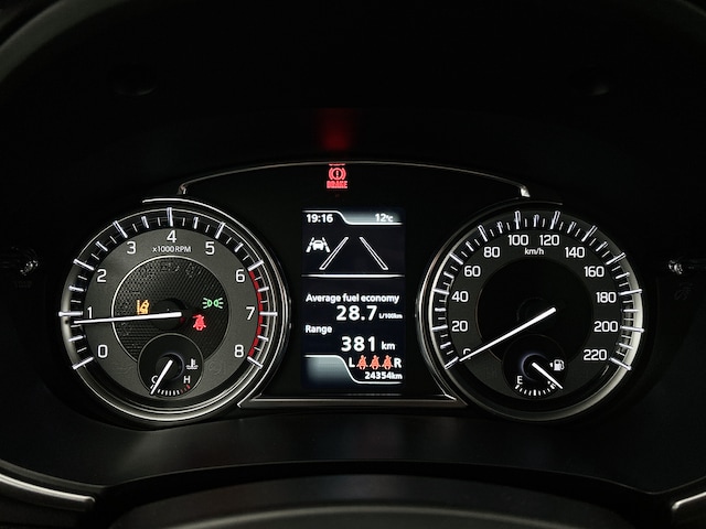 Aan boord van deze Suzuki houden verschillende geavanceerde systemen voor jou de weg in de gaten. Ze waarschuwen je voor noodsituaties en kunnen in een aantal gevallen ook zelf ingrijpen. Tijdens de rit heb je altijd een bijrijder, want de verkeersbord-detectie leest de borden langs de weg en projecteert ze voor je op het instrumentarium. Indien je onbedoeld de rijstrook lijkt te verlaten, reageert het Lane-keeping systeem meteen en corrigeert. Forward collision warning waarschuwt bij een dreigende aanrijding met een voorligger. Bovenop deze veiligheidsfeatures heeft deze Suzuki bovendien dodehoekdetectie, hill hold functie, brake assist, vermoeidheidsherkenning en bandenspanningcontrolesysteem.