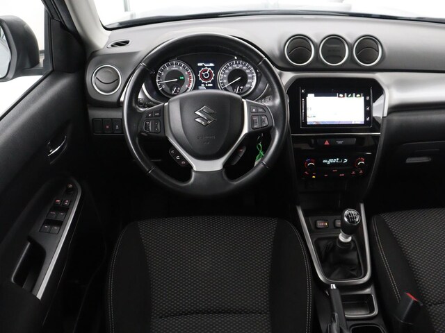 Wat een gemak, die achteruitrijcamera. Alles in beeld zonder capriolen. Adaptive cruise control is een comfortabele en veilige optie. Het systeem reguleert de snelheid en houdt automatisch afstand tot uw voorligger. In deze Vitara vindt u schakelaars op het stuur om het audiosysteem met dab-ontvangst te bedienen. Aan boord van deze Suzuki Vitara is een achteropkomend verkeer waarschuwing voor extra veiligheid. De electronic climate control zorgt voor een behaaglijk klimaat in de auto. Ook regensensor, lederen stuur, centrale deurvergrendeling met afstandsbediening, bagage afdekhoes en boordcomputer zijn aan boord.