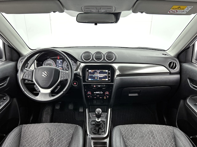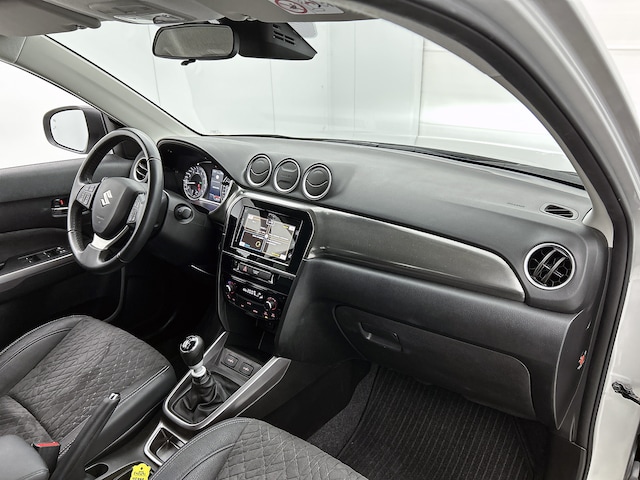 Aan boord van deze Suzuki houden verschillende geavanceerde systemen voor jou de weg in de gaten. Ze waarschuwen je voor noodsituaties en kunnen in een aantal gevallen ook zelf ingrijpen. De actuele snelheidslimiet, een inhaalverbod en andere verkeersborden; de verkeersborddetectie ondersteunt je tijdens elke rit. Deze Suzuki Vitara is ook behulpzaam als het gaat om een rechte koers. Het Lane-keeping systeem signaleert en corrigeert als je onbedoeld de rijstrooklijnen dreigt te overschrijden. Botsingen met een voorligger gebeuren relatief vaak. De forward collision warning slaat tijdig alarm als dat risico ontstaat, zodat je kunt ingrijpen. Dankzij veiligheidsvoorzieningen als dodehoekdetectie, hill hold functie, brake assist, vermoeidheidsherkenning en bandenspanningcontrolesysteem, ben je steeds veilig onderweg.
