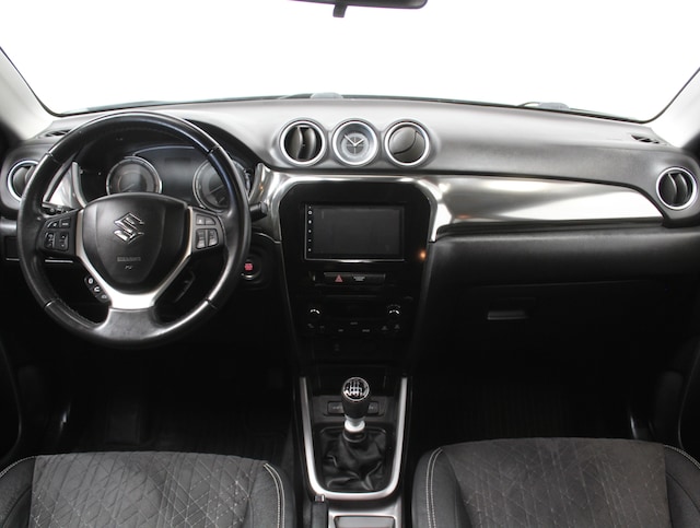 U rijdt gemakkelijk, comfortabel en zonder zorgen met deze Suzuki Vitara. Deze stoere auto wordt aangedreven door een benzinemotor en een handgeschakelde zesversnellingsbak. Voorin is het 's winters genieten met de verwarmbare voorstoelen voor zowel bestuurder als bijrijder. U wordt in deze auto ook getrakteerd op 17 inch lichtmetalen velgen, LED koplampen, donker getint glas achter, in delen neerklapbare achterbank en snelheidsafhankelijke stuurbekrachtiging.