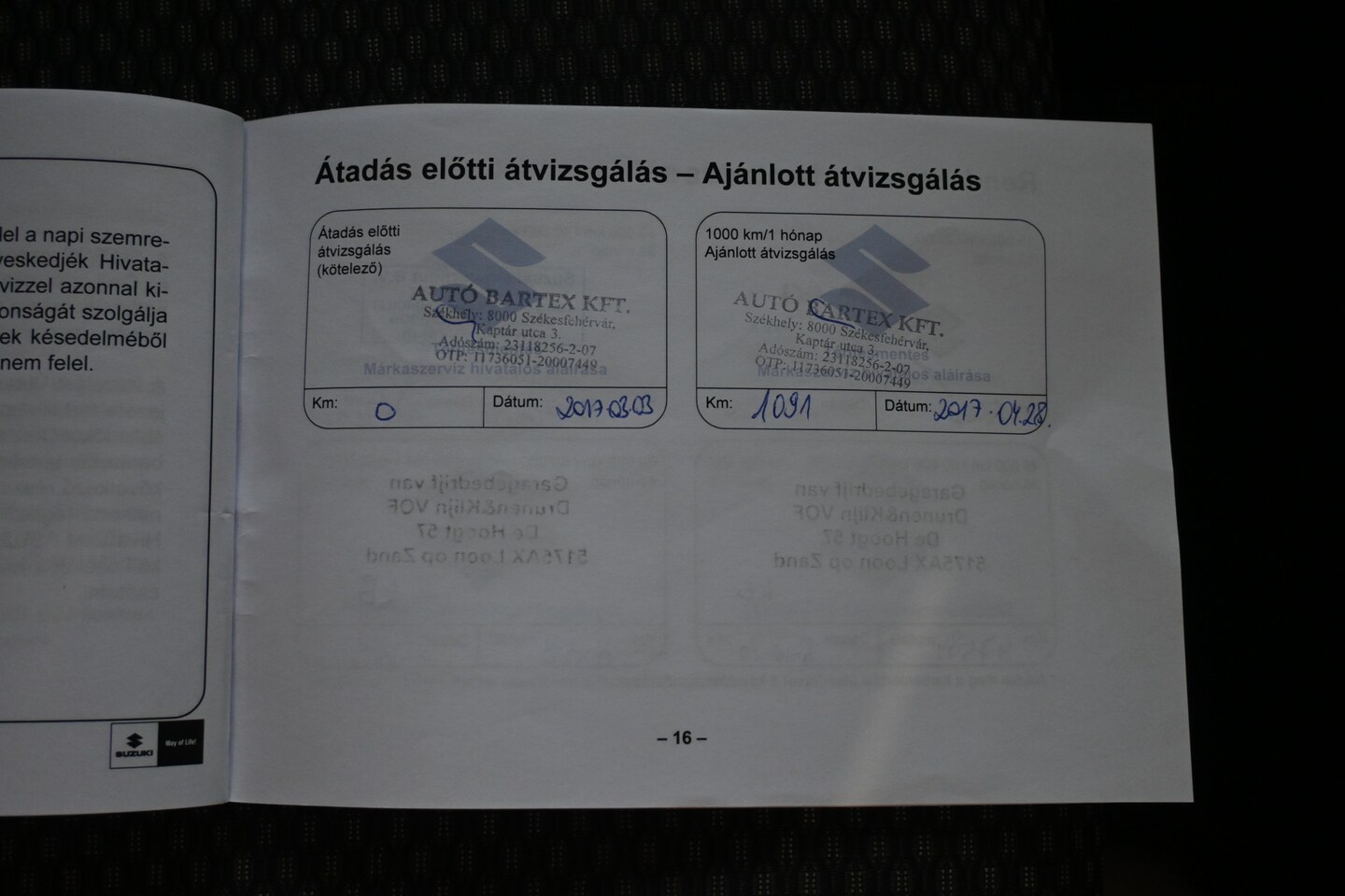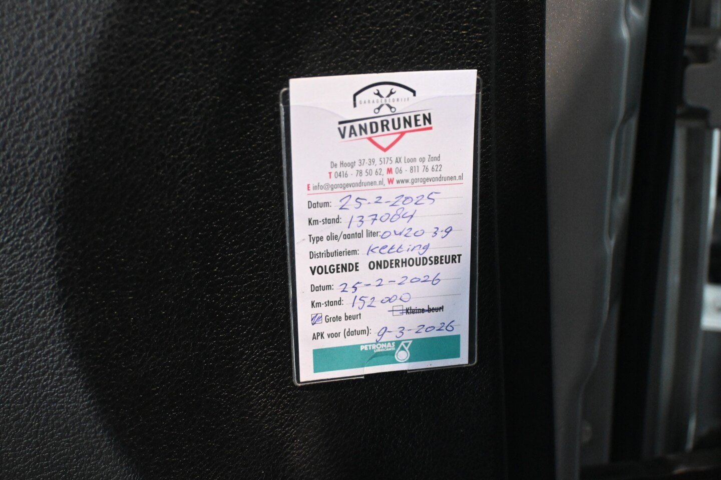 | APK | Bij aflevering |