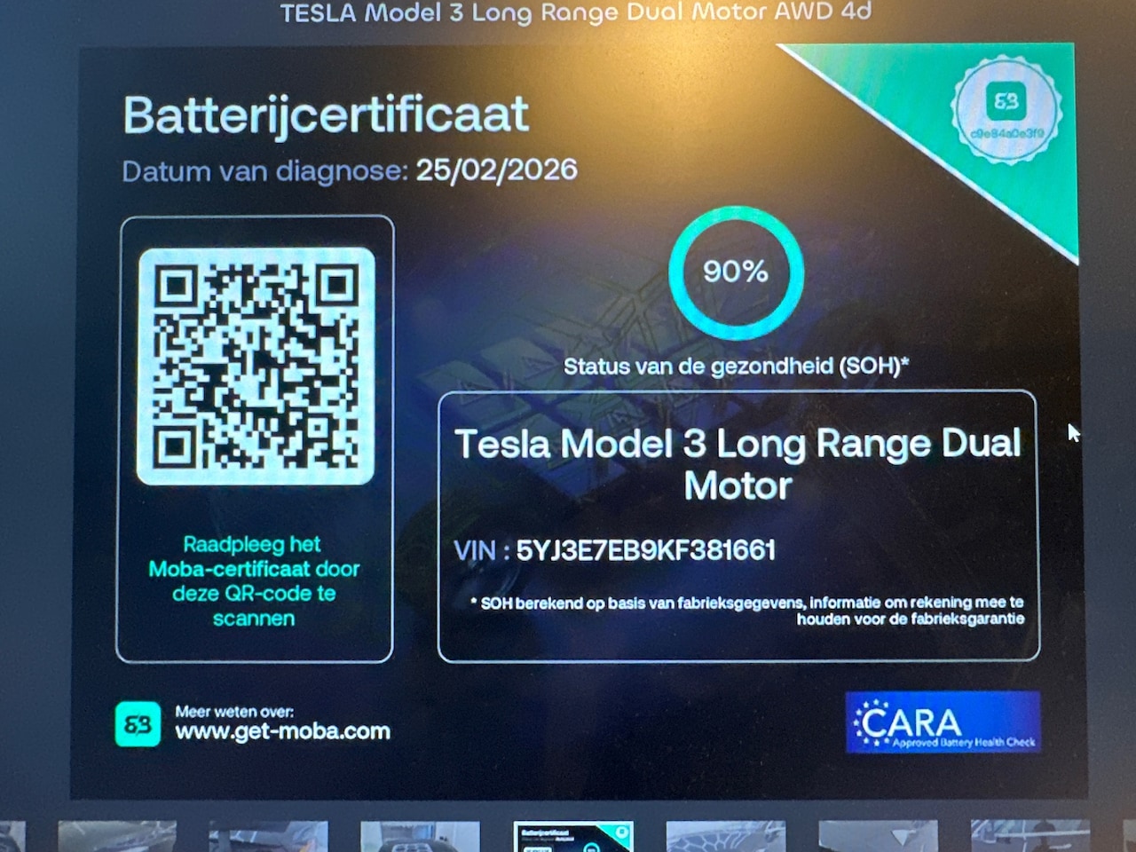 Long Range AWD 75 kWh FSD SOH 90%