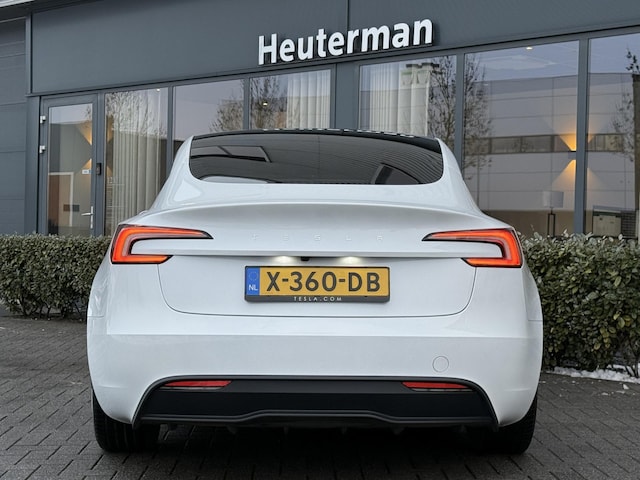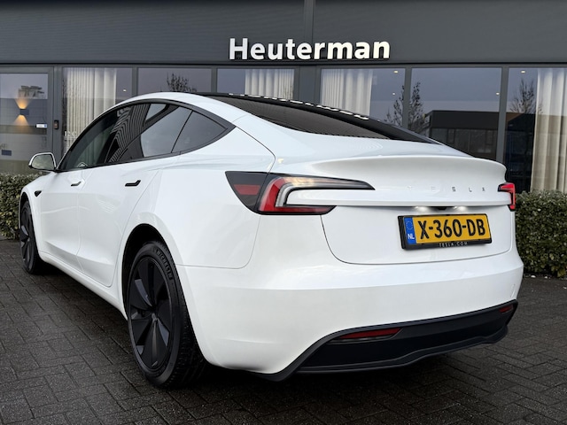 Nieuw facelift model Tesla Model 3! Auto is origineel Nederlands (NAP) geleverd, afkomstig van eerste eigenaar, in zeer nette staat en schadevrij bereden. Auto is compleet uitgerust; voorzien van o.a. glazen panoramadak, lederen bekleding met stoelverwarming en -verkoeling, achterbankverwarming, elec. achterklep, draadloze telefoonladers, entertainment scherm achterin met Netflix mogelijkheid, sfeerverlichting, Autopilot functie, LED koplampen en achterlichten, parkeersensoren voor + achter incl. parkeercamera,dodehoek assistent, privacy glas, algehele fabrieks garantie Tesla t/m 25/10/2027, Tesla garantie op accu en aandrijfunit t/m 25/10/2-31 of 160.000 km, 30% wegenbelasting korting, lage bijtelling voor ondernemer, prijs is rijklaar! (Nieuwe foto's volgen zsm, ivm sneeuwval is auto nog niet schoongemaakt)