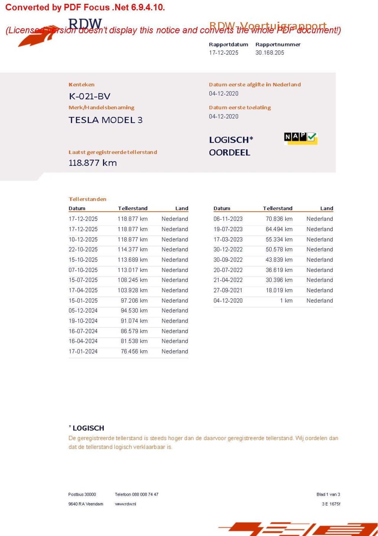 Bij aflevering