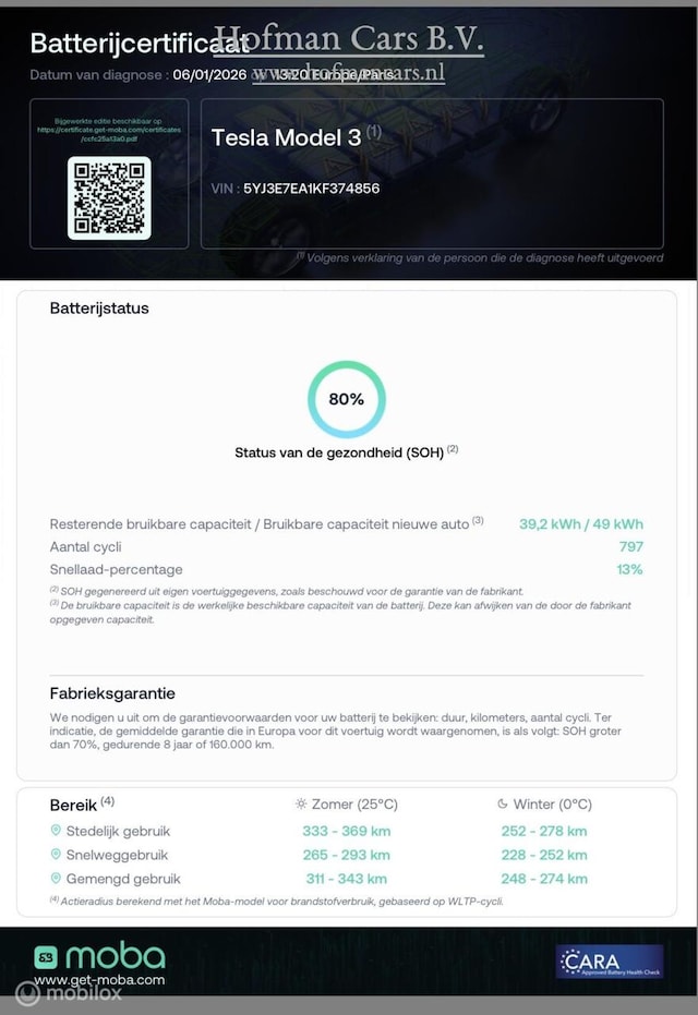 - 8 jaar / 160.000 km Tesla garantie op batterij en aandrijflijn
