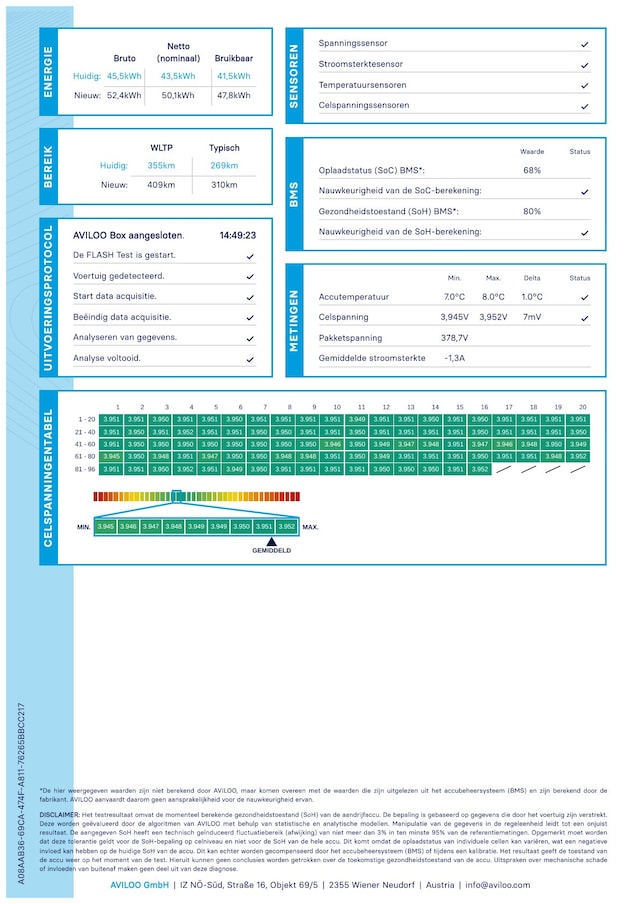 Accu: 55 kWh, Conditie: 87%, Type lithium-ion