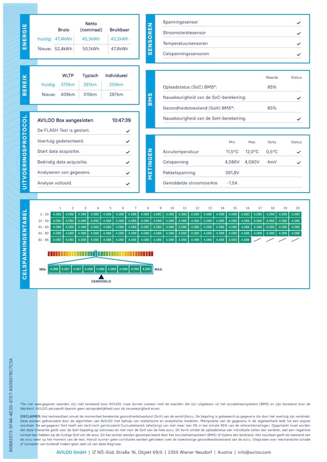 Accu: 55 kWh, Conditie: 90%, Type lithium-ion