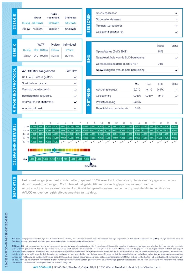 Accu: 85 kWh, Conditie: 91%, Type lithium-ion
