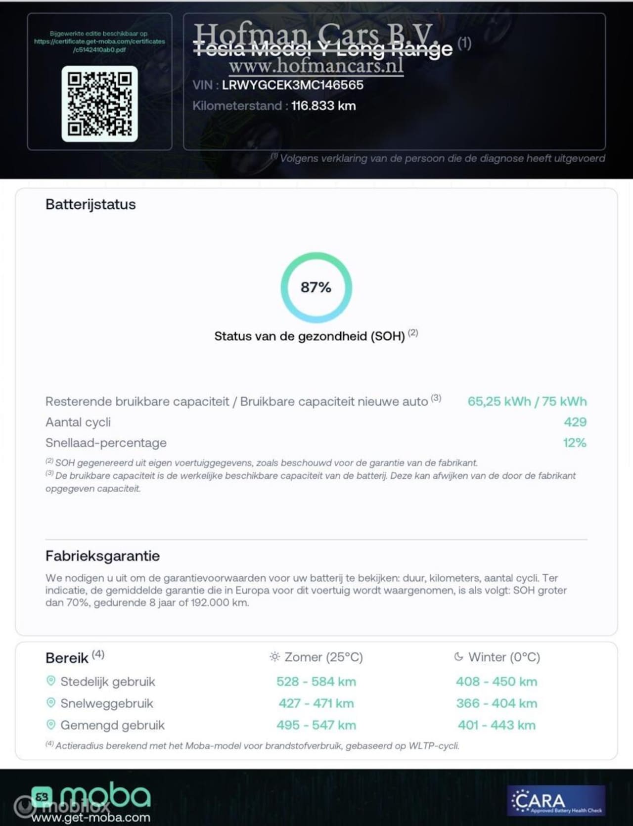 Long Range AWD 75 kWh Autopilot NL AUTO Inc. BTW SOH 87%