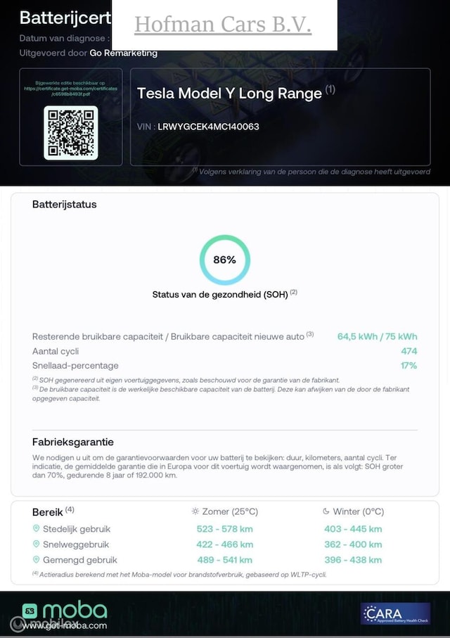 - Accucapaciteit: 75 kWh