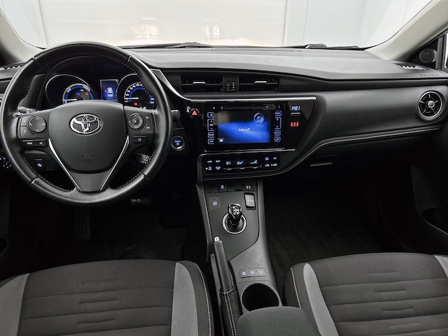 'Let's go places', is het motto van Toyota. Dus kies maar: dichtbij of ver, de snelweg of de stad. Deze Toyota Auris Touring Sports zal je blijvend aangenaam verrassen. Twijfel je nog tussen rijden op benzine of elektrisch? Niet nodig. Deze hybride Toyota Auris Touring Sports doet het allebei. Tot de voorzieningen van deze auto behoren 16 inch lichtmetalen velgen, LED-dagrijverlichting, in hoogte verstelbare passagiersstoel, in delen neerklapbare achterbank en LED-achterlichten.