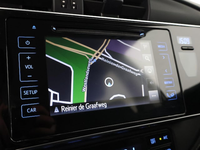 Ongelukken of parkeerschade? Dat gebeurt u niet meer, met de achteruitrijcamera. Het full map navigatiesysteem zorgt ervoor dat u altijd de juiste en snelste route vindt. Electronic climate control regelt volautomatisch de temperatuur. U kiest de gewenste temperatuur en het systeem doet de rest. U hoeft het stuur geen moment los te laten om de audio aan te passen. De audiobediening op het stuur is een veilige en praktische oplossing. Voor storingvrije digitale radio-ontvangst zorgt de DAB-ontvanger. U bent in deze Toyota ook voorzien van regensensor, cruise control, keyless entry, automatisch dimmende binnenspiegel en lederen stuur.
