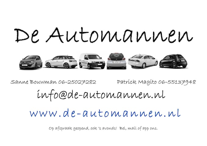 Voor een afspraak voor bezichtiging, een proefrit, taxatie van uw inruilauto of gewoon meer informatie; bel, mail of Whatsapp met Sanne op 06-25027282 of Patrick op 06-55137948. We zijn van 09.00 uur tot 19.00 uur op beide nummers te bereiken. Een email sturen kan ook: info@de-automannen.nl