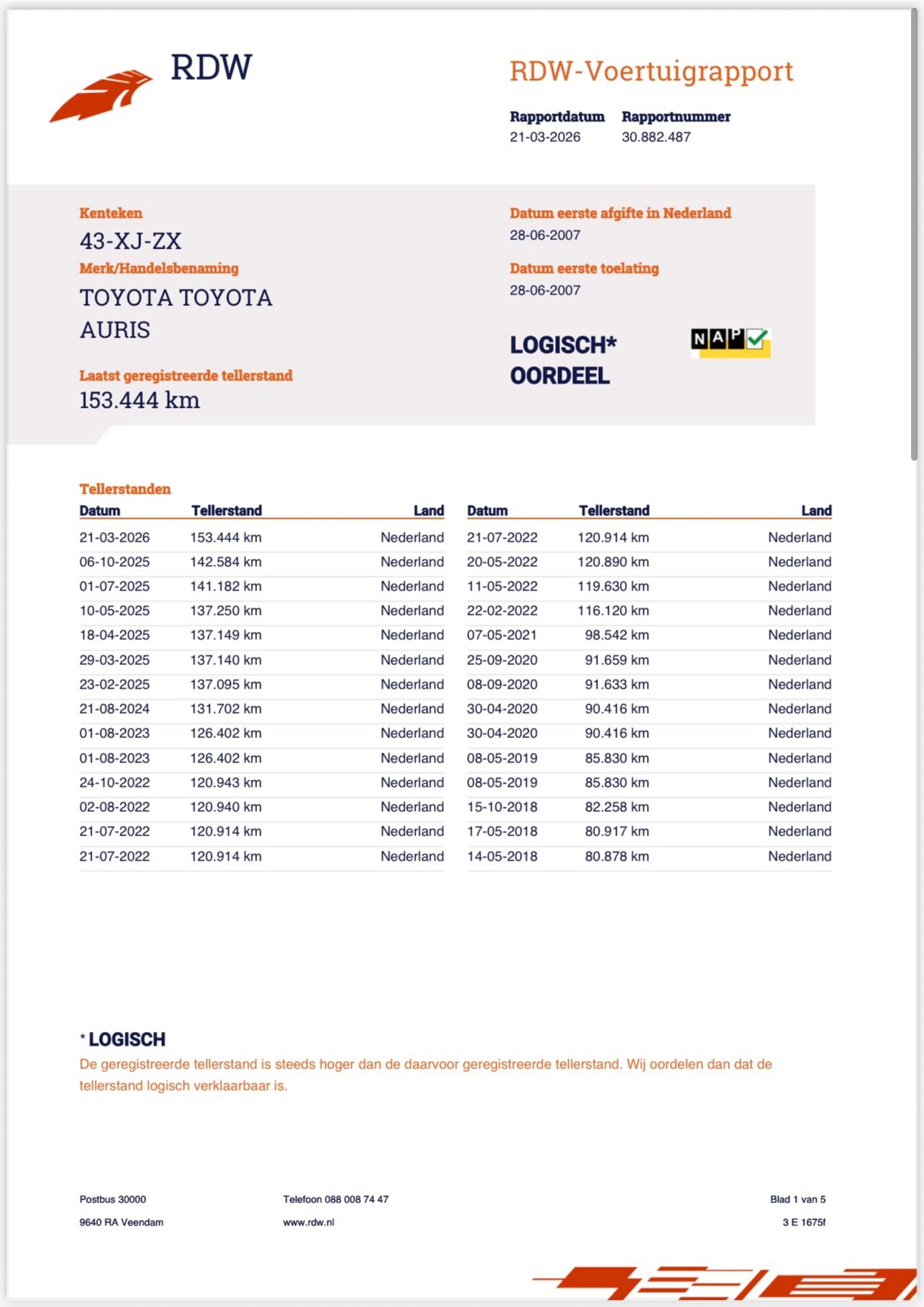 | Kilometerstand | 153.444 km |