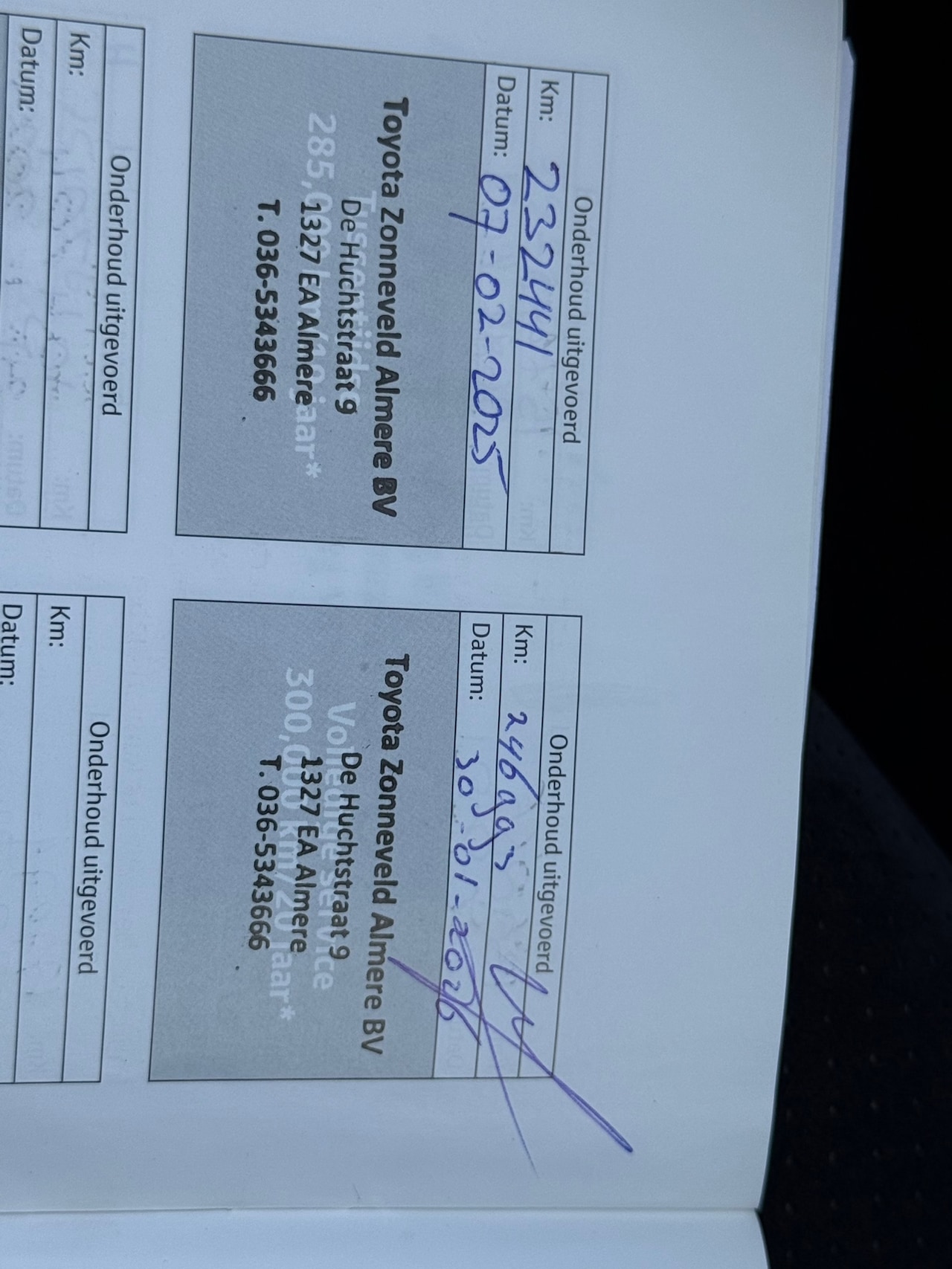 | APK | Bij aflevering |