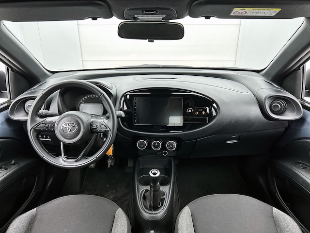 Soepel inparkeren gaat gemakkelijker dan je verwacht dankzij de achteruitrijcamera. Adaptive cruise control is een comfortabele en veilige optie. Het systeem reguleert de snelheid en houdt automatisch afstand tot jouw voorligger. Aan boord van deze Toyota Aygo X is een achteropkomend verkeer waarschuwing voor extra veiligheid. Voor een storingvrije radio-ontvangst zorgt de ingebouwde DAB-ontvanger. Het hele jaar door zorgt airconditioning voor een prettige temperatuur. En deze auto heeft ook lederen stuur en centrale deurvergrendeling met afstandsbediening als standaard uitrusting.
