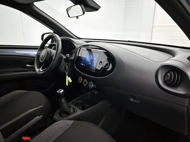 Ook achter de auto geen verrassingen bij het inparkeren. Daarvoor zorgt de achteruitrijcamera. Adaptive cruise control houdt de ingestelde snelheid vast en houdt afstand tot het voertuig voor je. Deze Toyota Aygo X is voorzien van sensoren aan de achterzijde om een achteropkomend verkeer waarschuwing te geven als de afstand tussen jou en een achterligger te klein is. Met de DAB-ontvanger luister jij naar glasheldere digitale radio. Natuurlijk is er in deze auto airconditioning aanwezig. Ook lederen stuur en centrale deurvergrendeling met afstandsbediening horen tot de voorzieningen op deze auto.