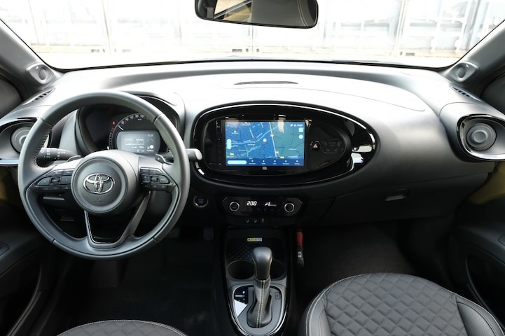 TOYOTA AYGO X 1.0 VVT-i S-CVT 72PK premium design pack Automaat | Smart Entry | Speakers, JBL Audio met 4 speaker en subwoofer | Stoelbekleding, deels leer ‘design Premium’ met ‘Ginger Beige’, ‘Tarragon’, ‘Celestite Grey’ of ‘Chili Red’ accenten | Stoelverwarming, beide voorstoelen | Toyota Smart Connect® Services** - Auto verwarmen/verkoelen (alleen i.c.m. automaat) | 18” lichtmetalen velgen matzwart ‘design Premium’ met ‘Ginger Beige’, ‘Piano Black’ of ‘Chili Red’ accenten | 10,5” multimediasysteem met Toyota Smart Connect** | 18” lichtmetalen velgen ‘design Envy’ | Apple Carplay & Android Auto (draadloos)* | Draadloos laden telefoon | Parkeersensoren, voor en achter | Sfeerverlichting | Stoelbekleding, deels syntethisch leer ‘design Luxe’ | Toyota Smart Connect® Services** - Realtime navigatie - Realtime verkeersmeldingen - Op afstand bedienbare functies - Auto vergrendelen/ontgrendelen - Gevarenlicht inschakelen/uitschakelen | 17” lichtmetalen velgen ‘machined design pulse’ | Automatische airco | Bi-tone met zwart dak | Donkere hemelbekleding | LED knipperlichten | LED koplampen | Mistlampen voor | Privacy Glass | Regensensor | Stoelbekleding, zwarte stof ‘design luxe’ | 17” stalen velgen met wieldoppen | 4.2” multi info instrumentarium | 9” multimediasysteem met USB-C aansluiting, DAB+ en 4 speakers | Achterbank neerklapbaar, 50:50 | Achterruitverwarming | Achteruitrijcamera | Apple Carplay & Android Auto (bedraad)* | Bekerhouders, twee voor en één achter | Buitenspiegels, elektrisch verstelbaar, verwarmd, in pianozwart | Elektrische ramen voor | Handmatige Airco | LED dagrijverlichting | Lederen stuurwiel | Monotone | Snelheidsmeter, ‘design Tacho’ | Start & Stop | Stoelbekleding, zwarte stof ‘design Comfort’ | Stoelhoogte verstelling, bestuurder manueel | Toyota Safety Sense 2: - Automatic High Beam; automatische schakeling groot- en dimlicht - Adaptive Cruise Control - Lane Departure Alert en Lane Trace Assist - Pre-Collision System met fietsers (dag) en voetgangers (dag+nacht) detectie - Road Sign Assist; verkeersbordherkenning | Voorstoelen verstelling, leuning en zitting | Tot 10 jaar garantie |