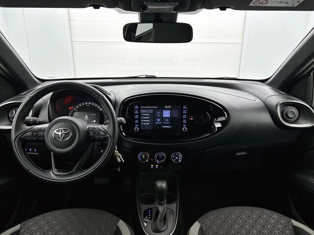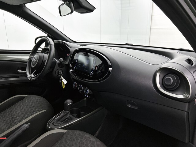 Nooit meer parkeerschade dankzij de achteruitrijcamera. Adaptive cruise control is een comfortabele en veilige optie. Het systeem reguleert de snelheid en houdt automatisch afstand tot jouw voorligger. Ook onderweg wil jes uperieure geluidskwaliteit naar eigentijdse normen. Vandaar het uitstekende audiosysteem met DAB-radio. Aan boord van deze Toyota Aygo X is een achteropkomend verkeer waarschuwing voor extra veiligheid. Automatische airconditioning verwarmt of koelt het interieur met een druk op de knop. De uitrusting van deze auto is met regensensor, lederen stuur en centrale deurvergrendeling met afstandsbediening behoorlijk compleet.