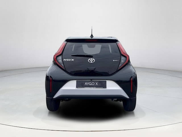 In één oogopslag zijn alle vitale functies afleesbaar dankzij het digitale dashboard. Met een gerust hart achteruitrijden? Dat kan, dankzij de achteruitrijcamera. Adaptive cruise control is een comfortabele en veilige optie. Het systeem reguleert de snelheid en houdt automatisch afstand tot uw voorligger. In het zeldzame geval van een storing weet u nog eerder dan de monteur wat er mankeert. Uw smartphone met remote services geeft direct inzicht. Als bijzondere veiligheidsoptie heeft deze Toyota Aygo X kruisend verkeer detectie, die waarschuwt als een botsing dreigt met tegemoetkomend verkeer. Extra opties op deze auto zijn: automatische airconditioning, draadloos opladen, DAB ontvangst, regensensor, centrale deurvergrendeling met afstandsbediening en bagage afdekhoes.