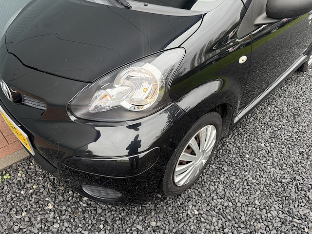 Zeer leuke, praktische, zuinige en complete Toyota Aygo 1.0-12v Access Airco 5-drs met o.a: zwarte metallic lak, anthrazite bekleding, airco, stuurbekrachtiging, radio/cd/mp3-speler, alu inleg in interieur, bumpers en spiegels in carrosseriekleur, in delen neerklapbare achterbank en voorzien van volwaardig reservewiel. Zeer nette 5-drs Toyota Aygo met slechts 135.600km !