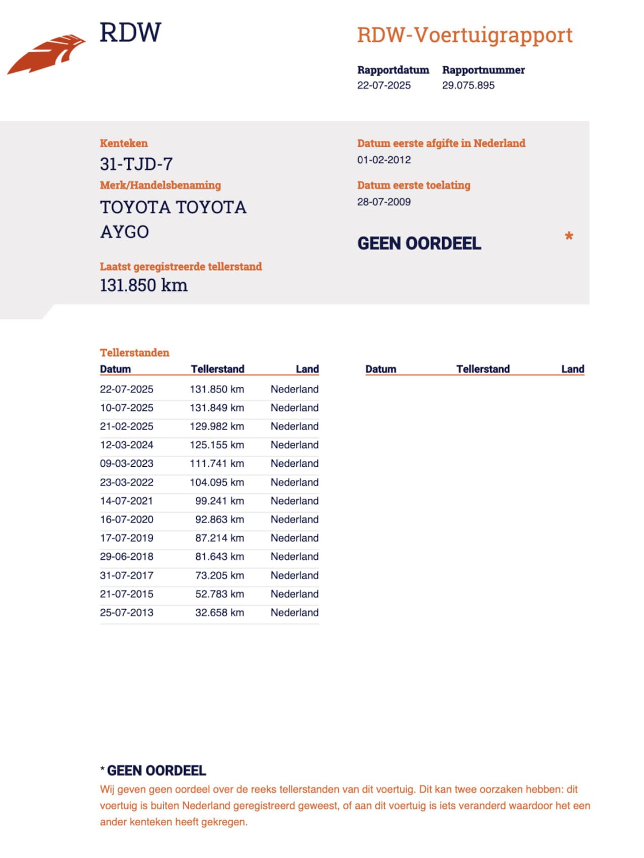 | Kilometerstand | 131.850 km |