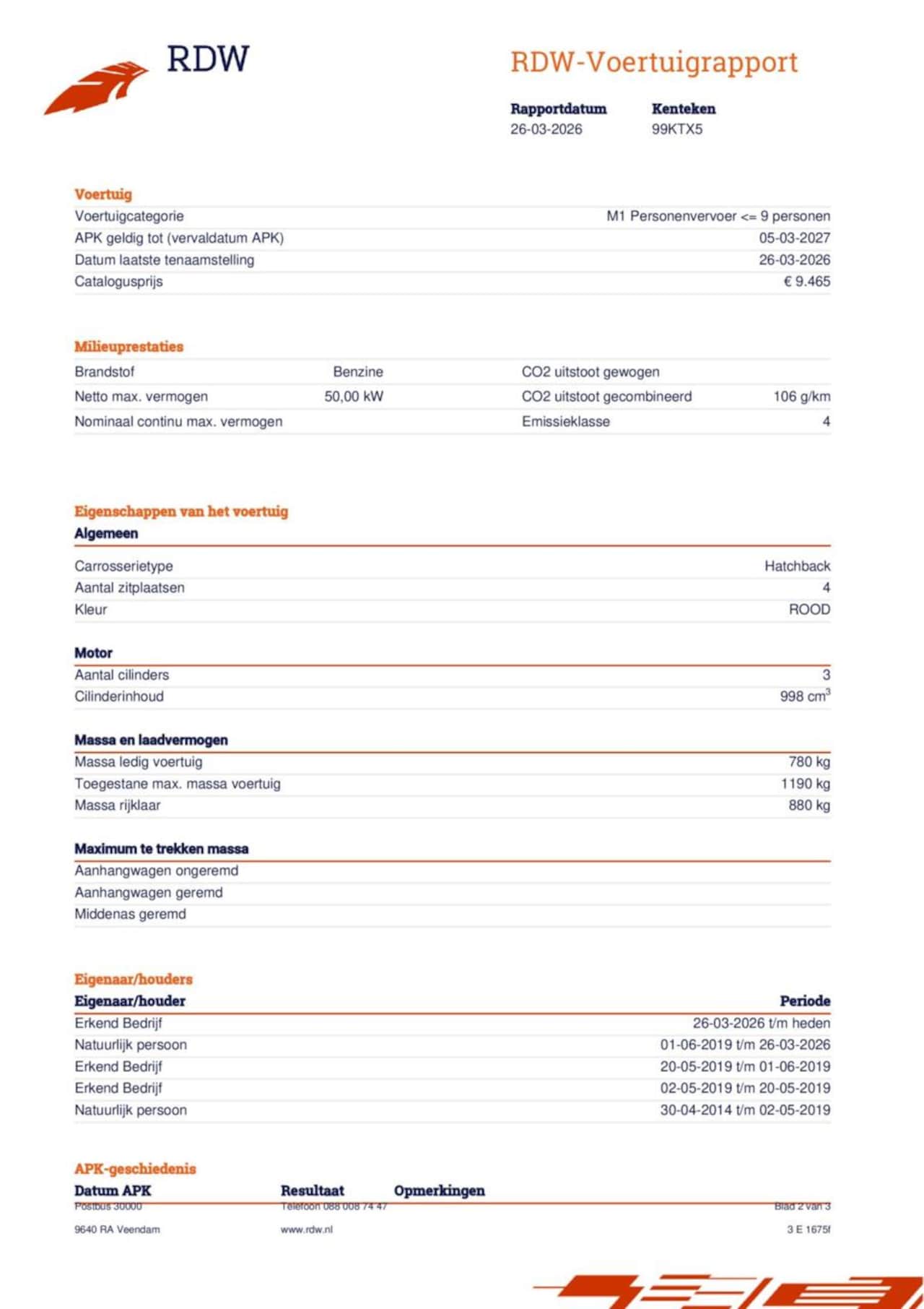| APK | Ja, tot 05 maart 2027 |