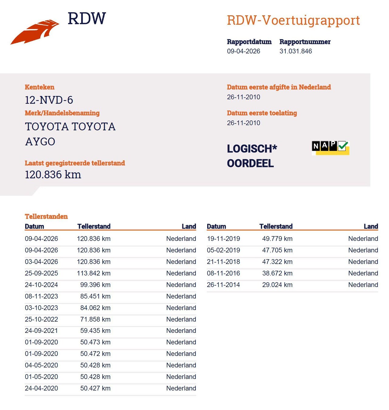 | Kilometerstand | 120.836 km |