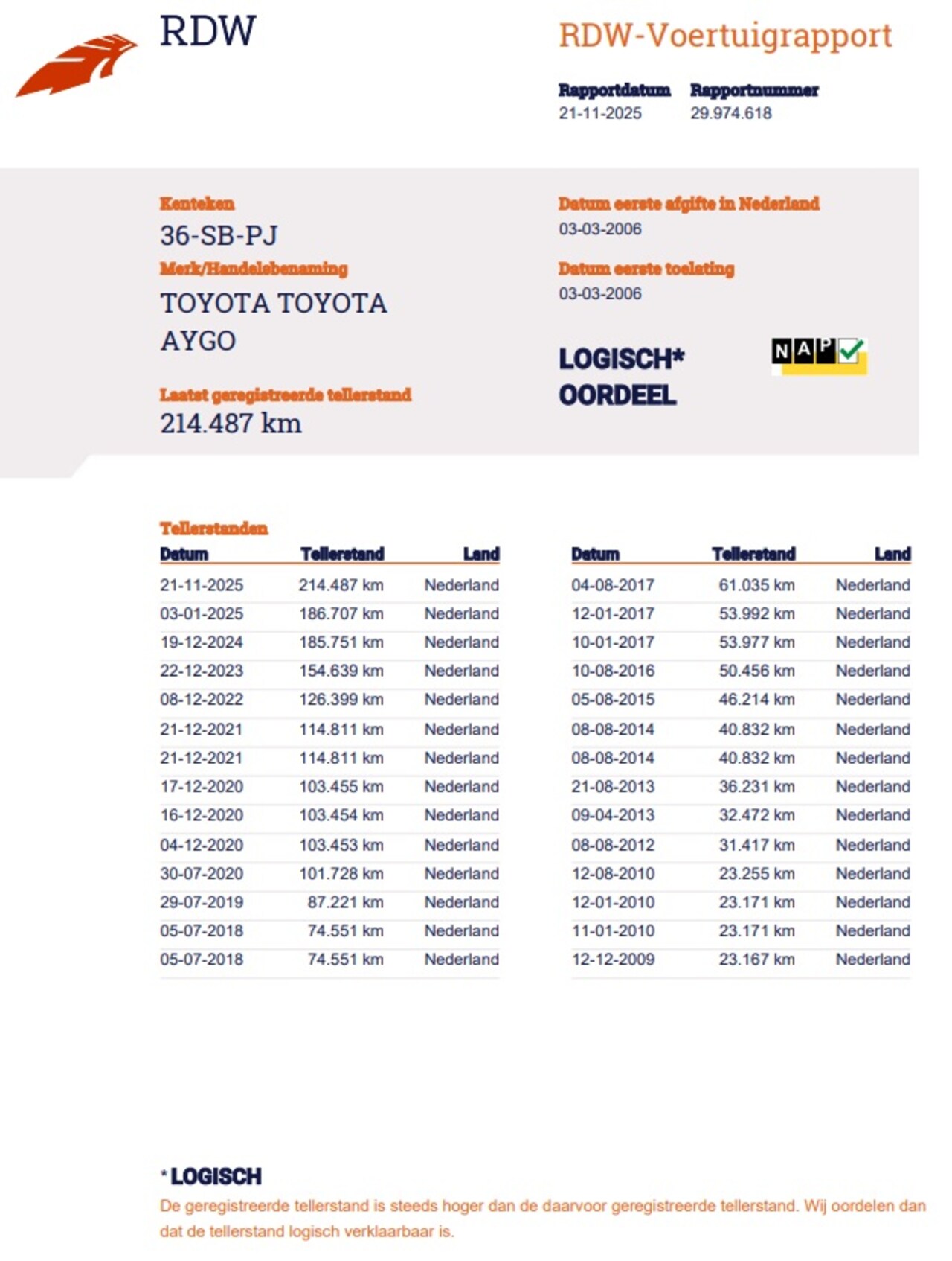 | Kilometerstand | 214.487 km |