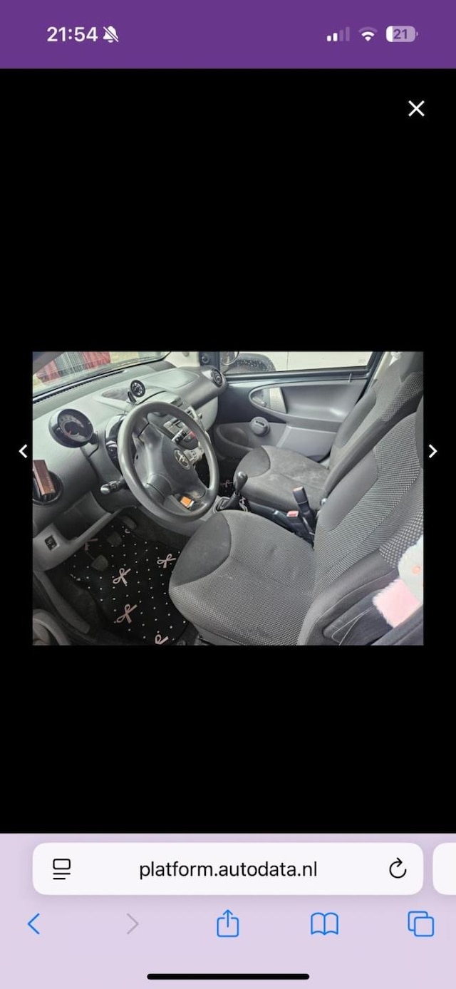 Deze Toyota Aygo komt uit 2011, werd geleverd van 01-10-2010 tot 31-03-2012 en kostte toen € 11.505,-. Deze originele Nederlandse personenauto staat sinds 2011 op kenteken, is voorzien van een benzine-motor, heeft een maximum vermogen van 50 kW (68 PK) en een cilinderinhoud van 998 cc.