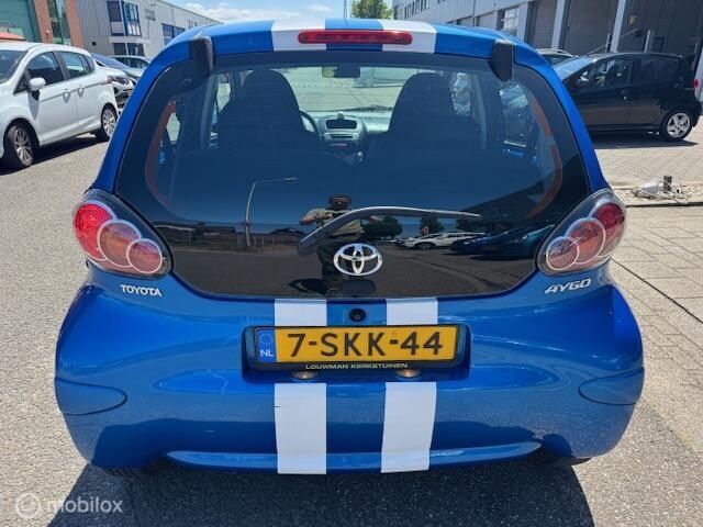 Toyota Aygo - 1.0 5 deurs , Airco , Electrische ramen , Blauw metaallak & witte sportive stripping Deurv