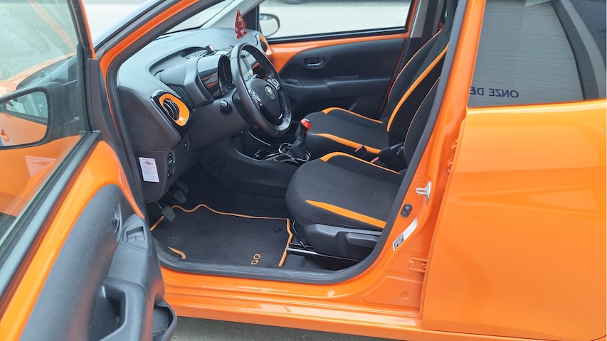 Achteruitrijden en inparkeren worden een eitje dankzij de achteruitrijcamera. Spraaksturing maakt het eenvoudiger en veiliger om deze auto onderweg te bedienen. Aan boord van deze Toyota Aygo is een achteropkomend verkeer waarschuwing voor extra veiligheid. De DAB-ontvanger zorgt voor een ruime keuze uit digitale radiozenders en een kristalheldere geluidsweergave. Allicht is er in deze auto ook airconditioning. De uitrusting van deze Toyota is met centrale deurvergrendeling met afstandsbediening en verstelbaar stuur behoorlijk compleet.