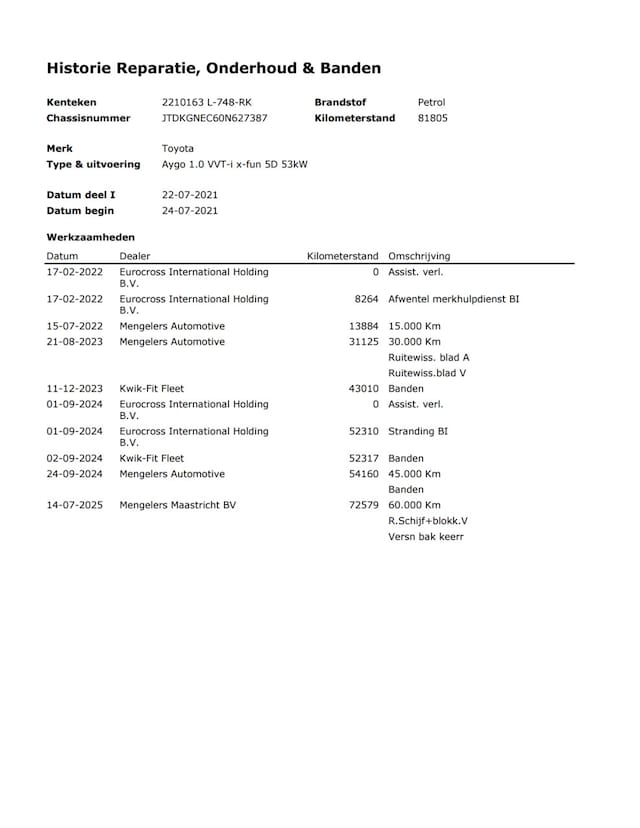 - Onderhoudshistorie aanwezig: Ja