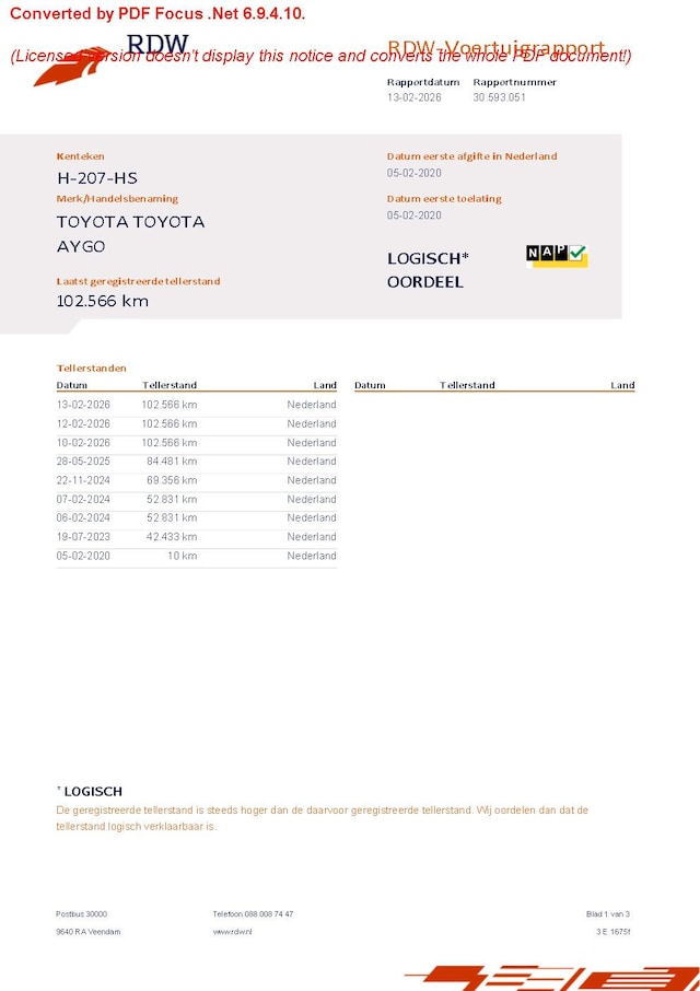 | Kilometerstand | 102.566 km |