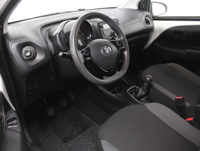Klein maar fijn. Deze Toyota Aygo doet zich niet groter voor dan-ie is. Een zuinige driecilinder benzinemotor bevindt zich onder de motorkap. Bij de zeer complete uitrusting van deze auto behoren ook LED-dagrijverlichting, neerklapbare achterbank en LED-achterlichten.