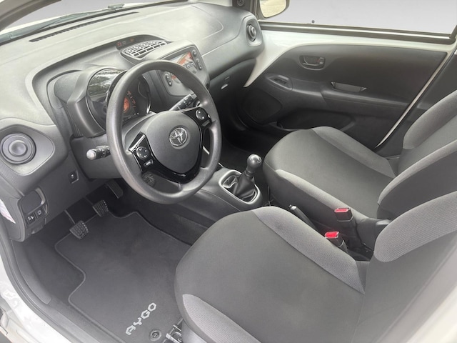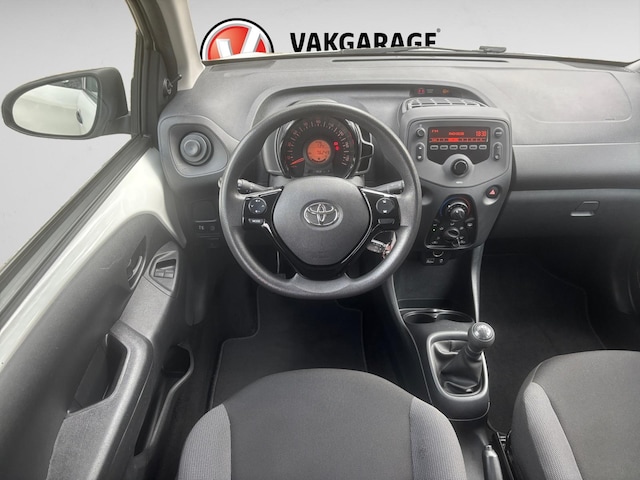 Het audiosysteem bedient u met knoppen op het stuur. Ook over uw schouder ziet u onderweg niet alles wat er aan de achterzijde gebeurt. Daarom heeft deze Toyota Aygo een achteropkomend verkeer waarschuwing. Kleine ritjes, grote reizen - altijd een relaxte aankomst dankzij de cruise control. In een auto als deze mag u ook airconditioning verwachten. Ook is de Toyota uitgerust met: buitentemperatuurmeter, isofix-aansluiting, centrale deurvergrendeling met afstandsbediening, boordcomputer, verstelbaar stuur en bekerhouder.