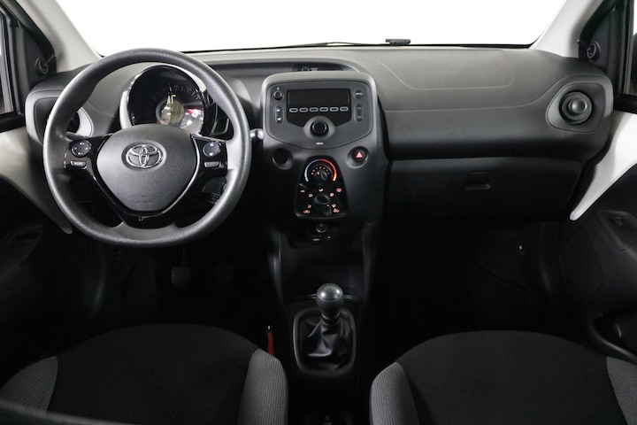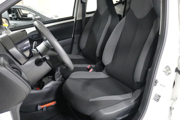 Binnenin ervaar je direct het praktische karakter van deze Aygo. Bedien het audiosysteem eenvoudig via de schakelaars op het stuur en geniet van een aangenaam klimaat dankzij de airconditioning. Verder beschikt de auto over centrale deurvergrendeling met afstandsbediening en een verstelbaar stuur voor een prettige zitpositie.