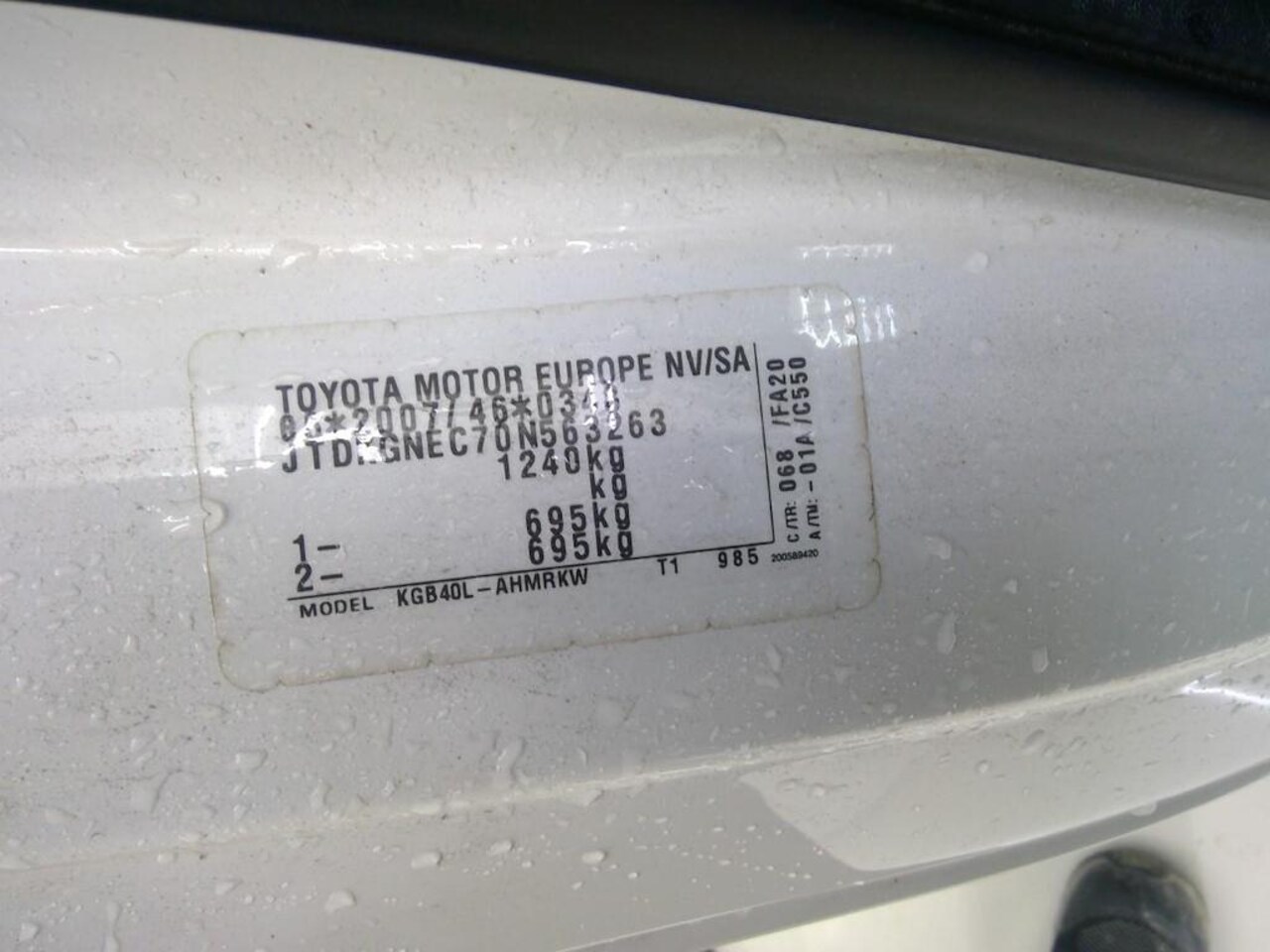 | Oorspronkelijke kleur | (068) (licht wit) |