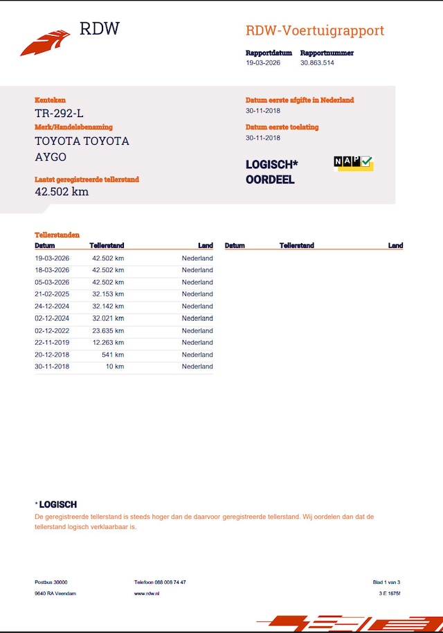 Kilometerstand: Gegarandeerd met het officiële Nationale Auto Pas (NAP) certificaat of gecontroleerd aan de hand van de onderhoudshistorie bij geïmporteerde auto`s.